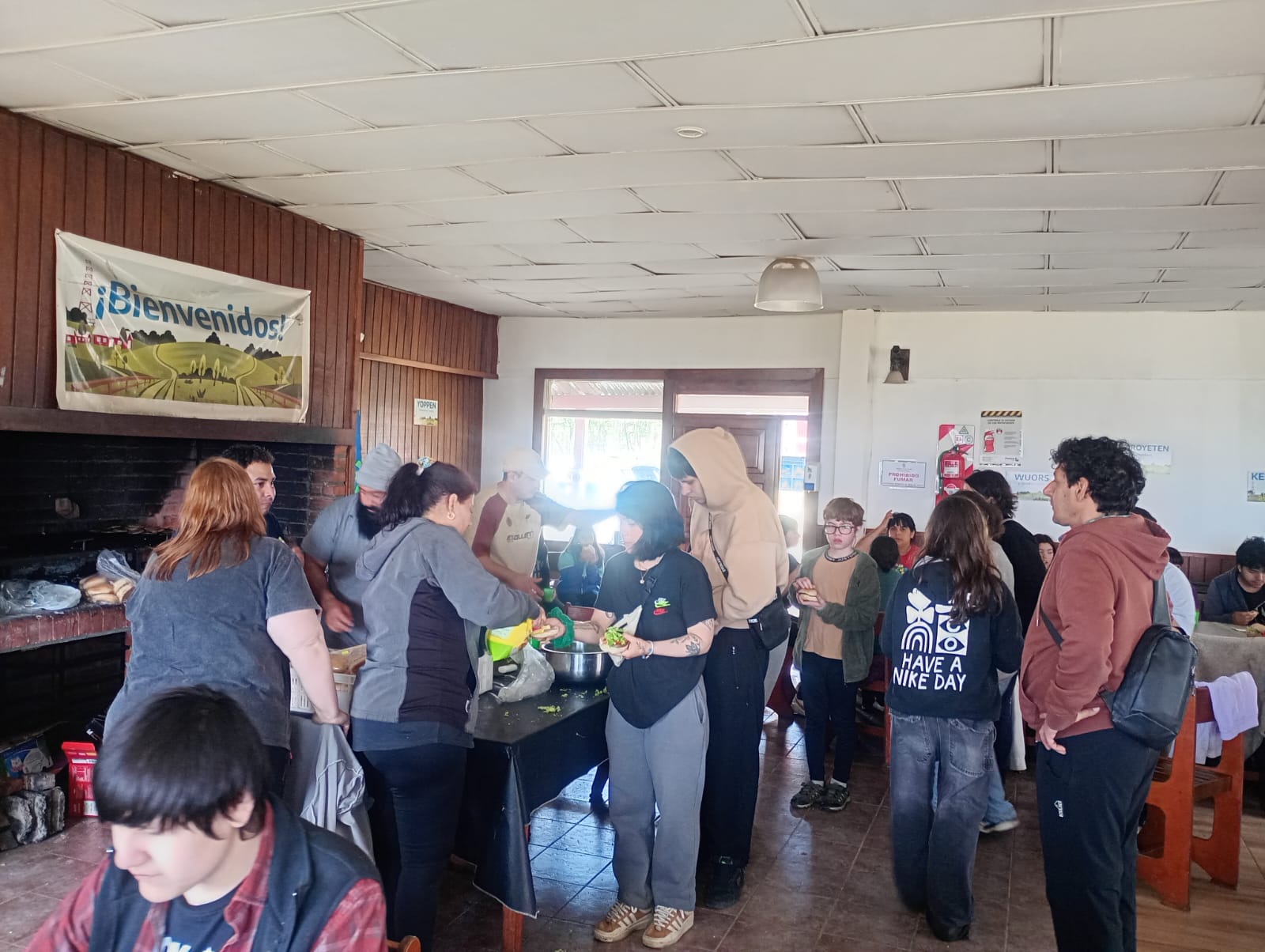 A pesar de los intervalos de lluvia propios de nuestra zona, el entusiasmo no decayó. Lejos de detenerse, los jóvenes demostraron su alegría y resiliencia participando en juegos al aire libre bajo el agua y compartiendo dinámicas grupales dentro del refugio, fortaleciendo los lazos de hermandad.
